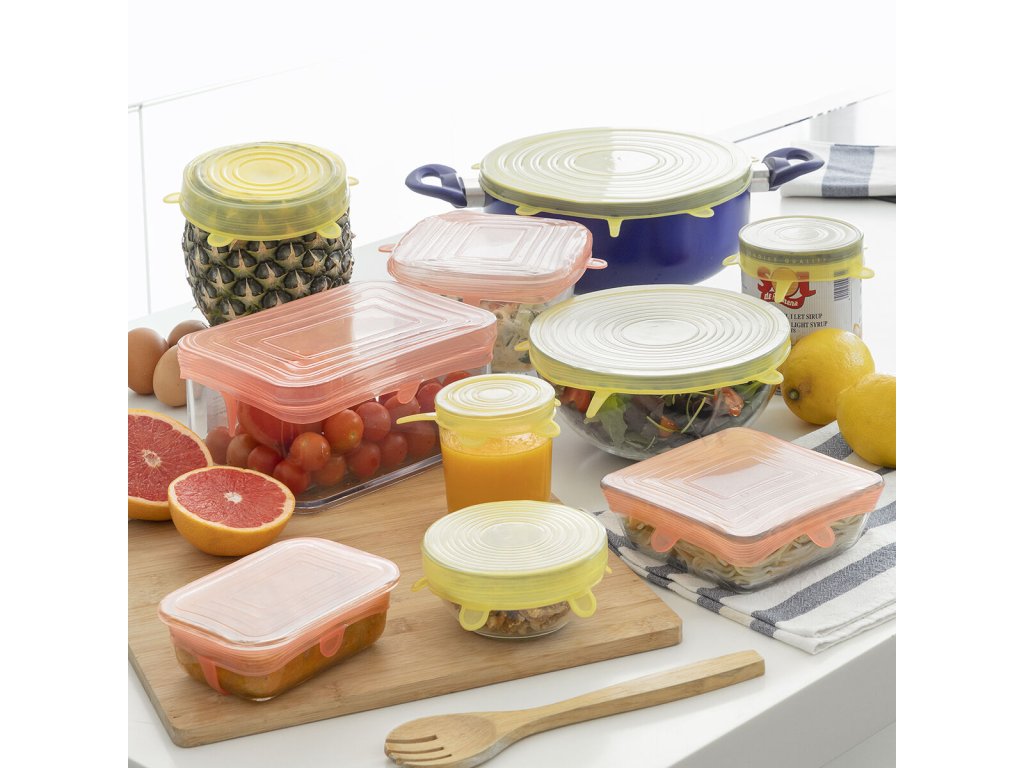 The Lilyd InnovaGoods újra felhasználható és állítható élelmiszer-tároló fedők tökéletesek a tárolók sokaságának lefedésére és hermetikus lezárására, a legjobb módja azélelmiszer tartósításának, hosszabb ideig frissen tartására. Ezek a rugalmas és alkalmazkodó fedőburkolatok könnyen adaptálják a tárolók széles skálájának méreteit, például üvegekhez, tálakhoz, csészékhez, edényekhez, konzervdobozokhoz, tányérokhoz, edényekhez stb. Áttetsző kialakításuk lehetővé teszi a tartalom megtekintését. Közvetlenül az élelmiszerekre, például vágott gyümölcsökre, vagy zöldségekre stb. helyezheti őket.