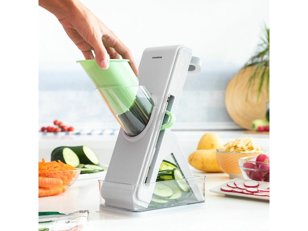 InnovaGoods itt van, hogy megkönnyítse a főzés egyszerűségét és szórakozását, mivel a legjobb új elemeket kínálja a konyhának, például a 5 az 1-ben összecsukható zöldség aprító mandolin Slichen InnovaGoods ! Fedezd fel a kiváló minőségű termékek széles skáláját, amelyek kiemelkednek a funkcionalitás, a hatékonyság és az innovatív design tekintetében!