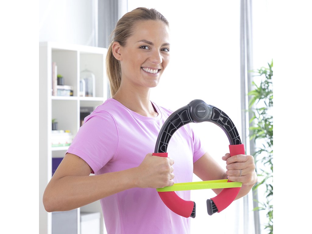 Állítható karos edzőgép ellenállási szalagokkal és edzésvezetővel, amely lehetővé teszi, hogy otthon és otthon kényelmesen fitt legyen a fitneszgyakorlatok széles skálájával. Ideális a karok, a mellkas, a váll, a hát és a láb izmainak erősítésére és tonizálására. Ez az ergonómikus edzőterem -felszerelés rendkívül sokoldalú és alkalmazkodó, mivel színétől függően 3 különböző színű (zöld, kék és fekete) rugalmas szalagot tartalmaz. Fokozatosan növelheti az edzést az alacsonyabbról a magasabb ellenállásra. Csúszásmentes, izzadságot elnyelő anyaga jó tapadást és szilárd tartást biztosít. Ezenkívül robusztus, strapabíró és kompakt, így kevés helyet foglal el, megkönnyítve a szállítást és a tárolást.