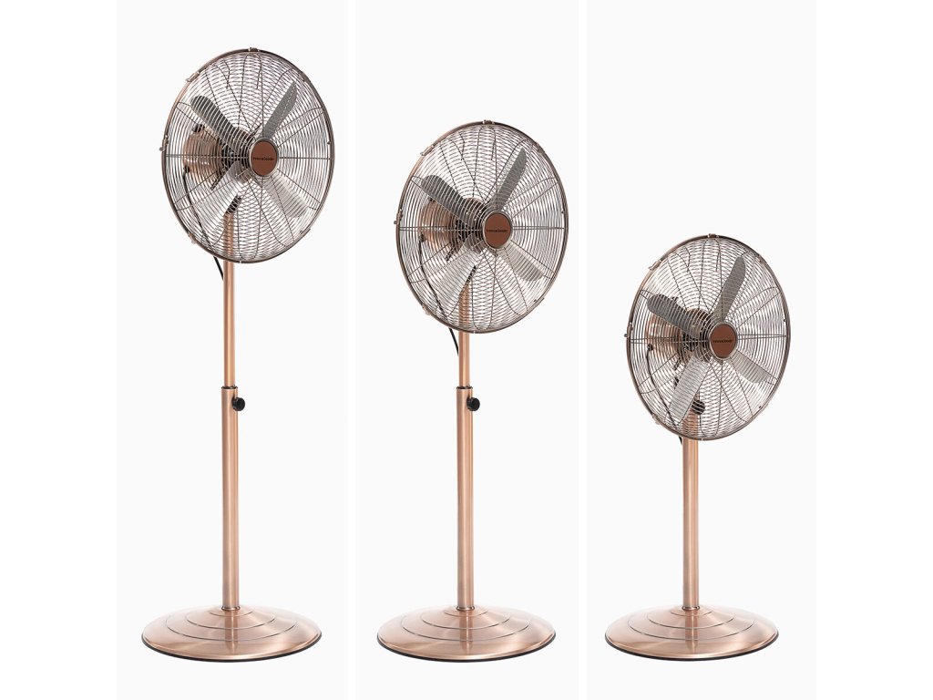 Nagy teljesítményű fém talapzatú ventilátor, nagy szellőzési kapacitással, amely ideálissá teszi a nyári hő elleni küzdelmet. Kiváló minőségű anyagokból készült, és ötletes és elegáns retro dizájnja révén kiemelkedik. Kiválóan alkalmas arra, hogy a levegő a ház minden helyiségében keringjen.