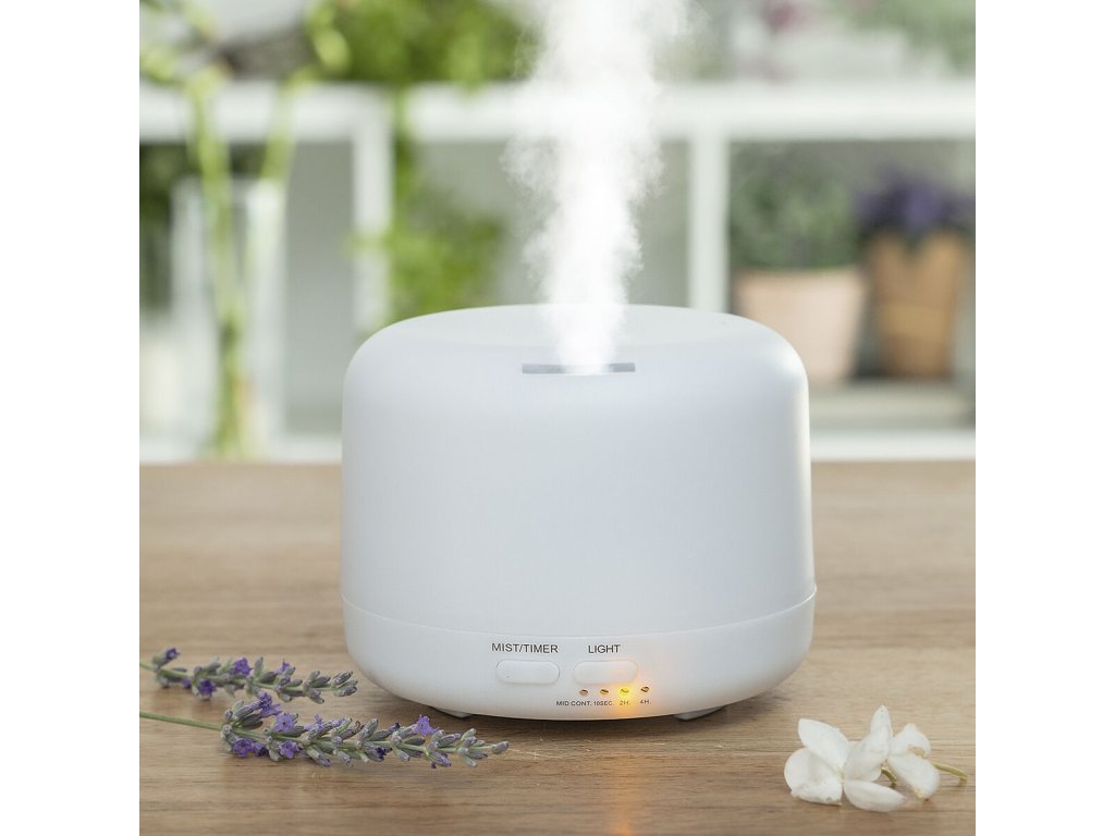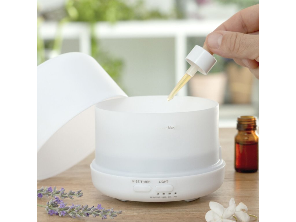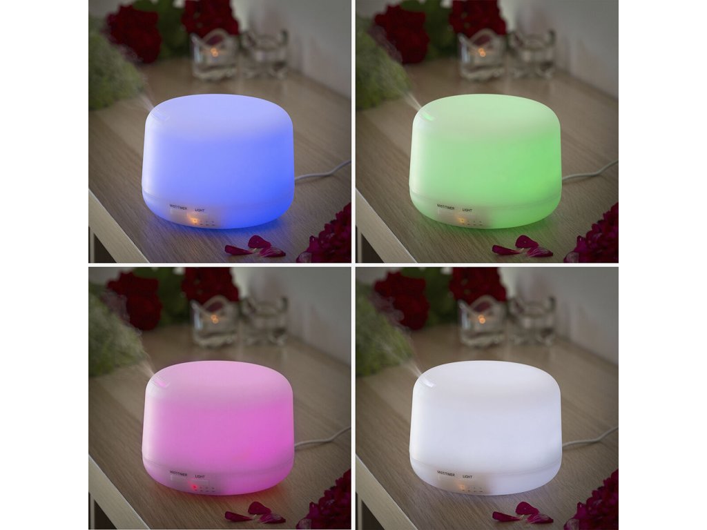 Aromadiffúzoros párásító, többszínű LED-del, amely javítja a levegő minőségét, segít a jobb légzésben, miközben megvilágítja és illatosítja a környezetet a kívánt illatokkal (nem tartozék). Ötletes, modern és diszkrét kialakításának köszönhetően ideális beépíteni otthonába, vagy irodájába stb. Akár 15 megvilágítási módot kínál (RGB LED fény), mivel 14 rögzített színe van, és lehetősége van egy folyamatos többszínű sorozatra, bár ezt a funkciót szükség esetén ki is lehet kapcsolni. Vízzel használható és aromákat vagy esszenciákat lehet hozzáadni. Működése nagyon egyszerű, csak le kell venni a fedelet, meg kell tölteni a tartályt vízzel vagy vízzel hígított aromával (0,2–0,3 ml) anélkül, hogy túllépnék a maximális kapacitásvonalat, újra le kell fedni, csatlakoztatni kell az áramforráshoz és konfigurálja a kívánt opciókat a mellékelt kézikönyv utasításainak betartásával Térfogata 400 ml, csúszásmentes lábakkal és időzítővel rendelkezik, így több lehetőség közül választhat (10 s, 2 óra, 4 óra), vagy kikapcsolhatja az időzítőt. Ezenkívül automatikusan kikapcsol, ha a benne lévő víz elfogyott. Hatásköre kb. 12-20 m². Hálózati adaptert tartalmaz C típusú csatlakozóval.