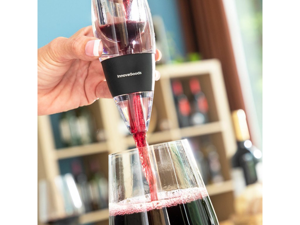 • Szűrővel ellátott levegőztető: ez az innovatív levegőztető oxigénnel látja el a bort, hogy maximalizálja annak ízét és tulajdonságait, lehetővé téve a bor hiteles aromájának kibontakozását. Integrált szűrőt tartalmaz a borseprő vagy parafa maradványok visszatartására. A szűrő a könnyű tisztítás érdekében kivehető.
