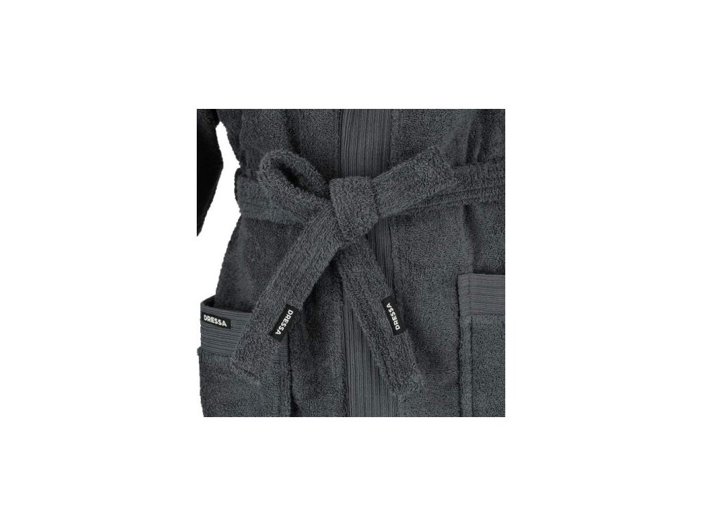 Dressa Home kapucnis hosszú ujjú frottír fürdőköpeny köntös - sötétszürke színben tökéletes viselet lehet, otthonra, uszodákba, strandra, vagy vízpartokra. Komfortos szabása és frottír anyaga ideálissá teszi a fürdés előtti és utáni használatra. Oldalt praktikus zsebekkel lett ellátva.