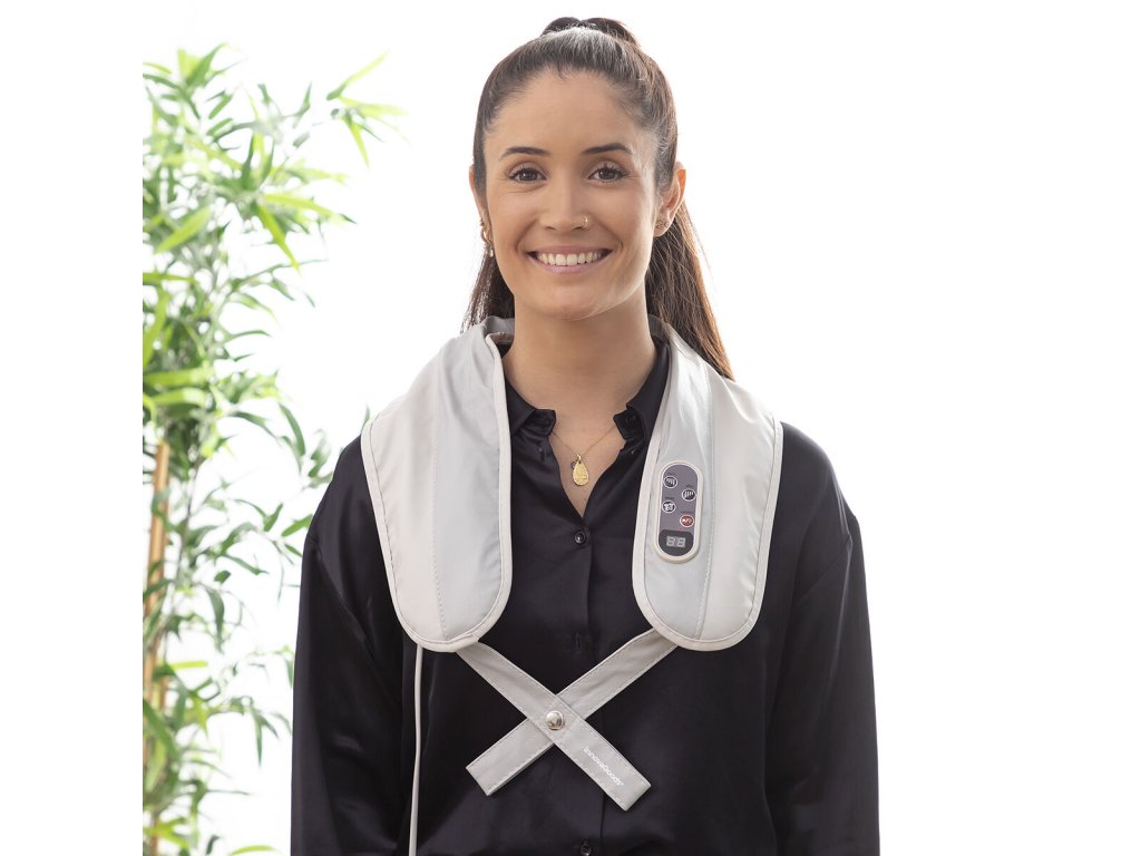 Érintésterápián (EFT) alapuló elektromos termikus masszírozó, amely a test bizonyos pontjainak megérintésével (60-350 b.b.b.) álló masszázstípust végez, hogy a masszázsterület feloldásával és ellazításával fizikai és érzelmi jó közérzetet érjen el. Az innovatív érintésterápia masszázs ütögető funkciója segít enyhíteni a stresszt és ellazítani az izmokat egy fárasztó munkanap, vagy intenzív sportolás után. Ez az ergonomikus, többfunkciós masszírozó ideális a nyak területére, de használható vállon, háton és lábakon is. Ezenkívül, kellemes és megnyugtató meleg érzést kelt a masszázs során (termikus funkciója nem kapcsolható ki). LCD kijelzővel és több gombbal rendelkezik, így kényelmes és egyszerű a használata. 99 masszázsbeállítással és 20 intenzitási fokozattal rendelkezik. 15 perc használat után automatikusan kikapcsol. Puha tapintású, és többféle pozícióban használható, köszönhetően a klipszes zárásának és a két fogantyúnak, amelyek segítik a nyomásszabályozást és a készülék kézi vezérlését.