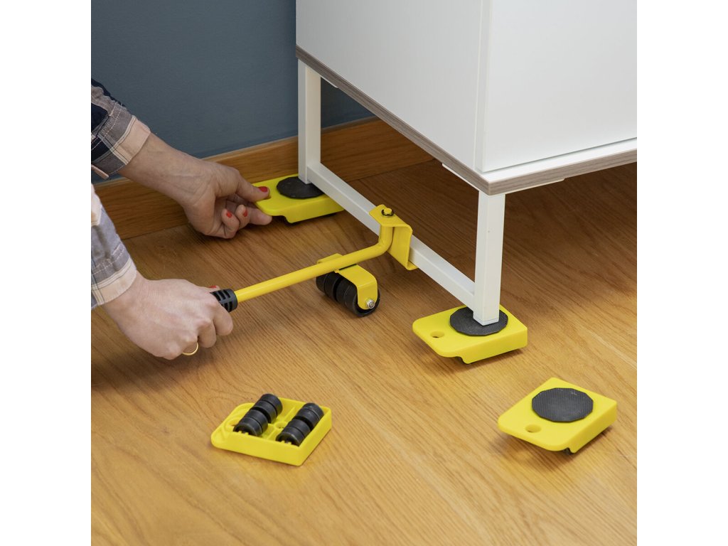 Sokoldalú és masszív emelő- és hordozóeszköz, amely lehetővé teszi nehéz tárgyak, például bútorok, nehéz dobozok, készülékek stb. otthoni környezetben történő könnyed mozgatását. Ötletes és innovatív multifunkciós kialakításának köszönhetően teljes kényelem mellett teszi lehetővé az emelést, áthelyezését, csúsztatást, beállítást és szintezését. Teljesen alkalmazkodik a kívánt szállítási irányhoz, egyszerű módon, minimális erőfeszítéssel, mivel ergonomikus, csúszásmentes emelő fogantyúja van, amely 180 ° -ig képes elfordulni, és 4 db, 360 ° -ig elforgatható kerekekkel ellátott tartóelem tartozik hozzá.