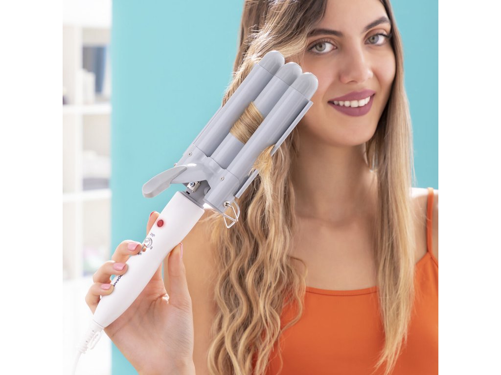 Kerámia hajformázó hajsütővas innovatív hármas kialakítással, amely tökéletes a hajgöndörítéshez, könnyű és kényelmes, optimális és professzionális eredmény elérése érdekében. Készítsen nagy és vastag hullámokat, különleges alkalomra vagy természetes mindennapi megjelenéshez. Ideális megoldás a megjelenés megváltoztatásához anélkül, hogy fodrászhoz kellene menni, időt és pénzt takarítva meg. Ergonomikus kialakítású és égésgátló fogantyúval rendelkezik. 2 hőmérsékleti szintje van, hogy minden hajtípushoz alkalmazkodjon. A PTC technológia gyors felmelegedést biztosít (kb. 1 perc) és növeli tartósságát. A három kerámia bevonatú rúd lehetővé teszi a haj teljes védelmét és a hő egyenletes eloszlását állandó hőmérsékleten. A 360 ° -os forgatható tápkábel megkönnyíti használatát és mobilitását. Nem kuszálja és károsítja a hajat, és nagyon könnyen használható.