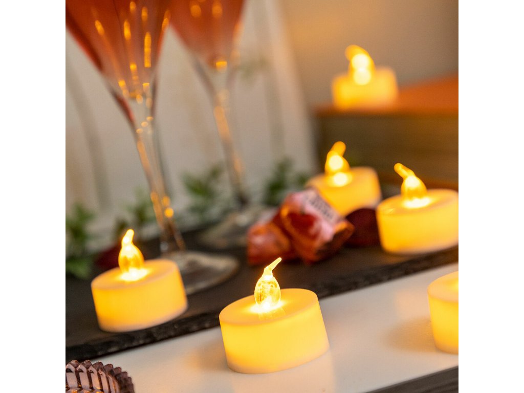 • 12 LED-es gyertya készlet: LED-es tealámpákból álló készletünk tökéletes dekoráció a legkülönlegesebb pillanatok és helyek díszítésére. Lágy világításuk meghitt és hangulatos légkört teremt, amely egyedi és felejthetetlen élményeket kísér. Minden gyertya be- és kikapcsológombbal rendelkezik, hogy akkor kapcsolja be és ki, amikor csak akarja.