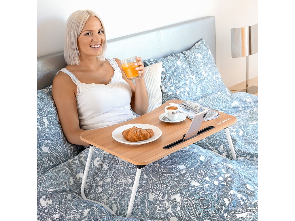 Tartós és praktikus hordozható asztal, amely tökéletesen alkalmas laptop használatra, írni, rajzolni, vagy a reggeli kényelmes elhelyezésére az ágyban, kanapén.