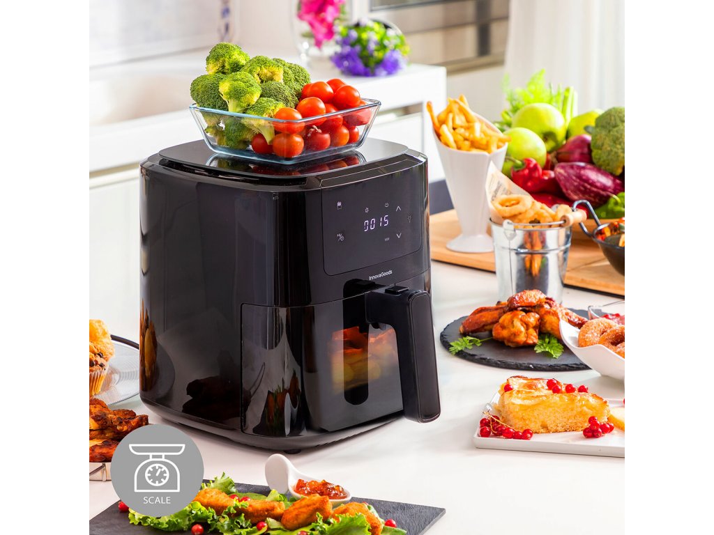 • Modern: Sütőnk átlátszó ablakkal és világítással rendelkezik, hogy a kosár kinyitása nélkül ellenőrizhesse a sütést! Ezen kívül 5 literes űrtartalma, 1500 W-os teljesítménye és beépített mérlege lehetővé teszi, hogy ízletes ételeket főzzön, pontosan a megfelelő módon!