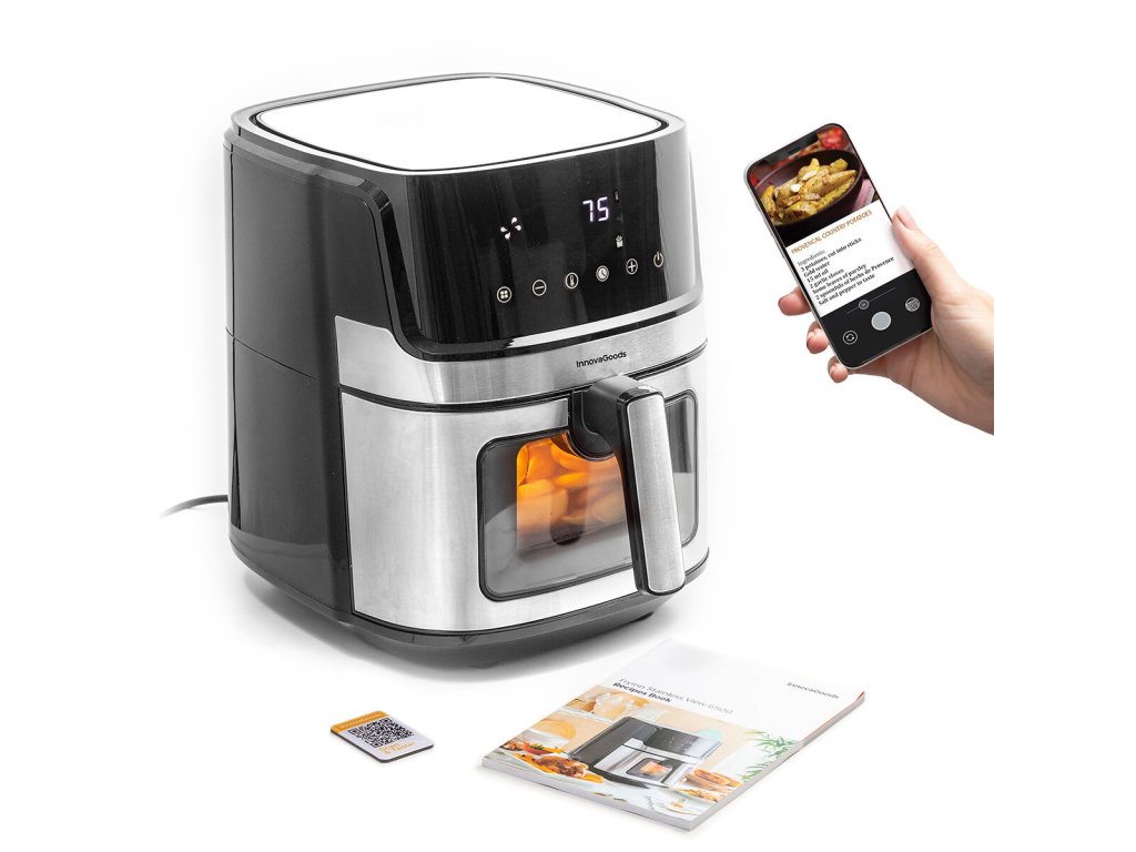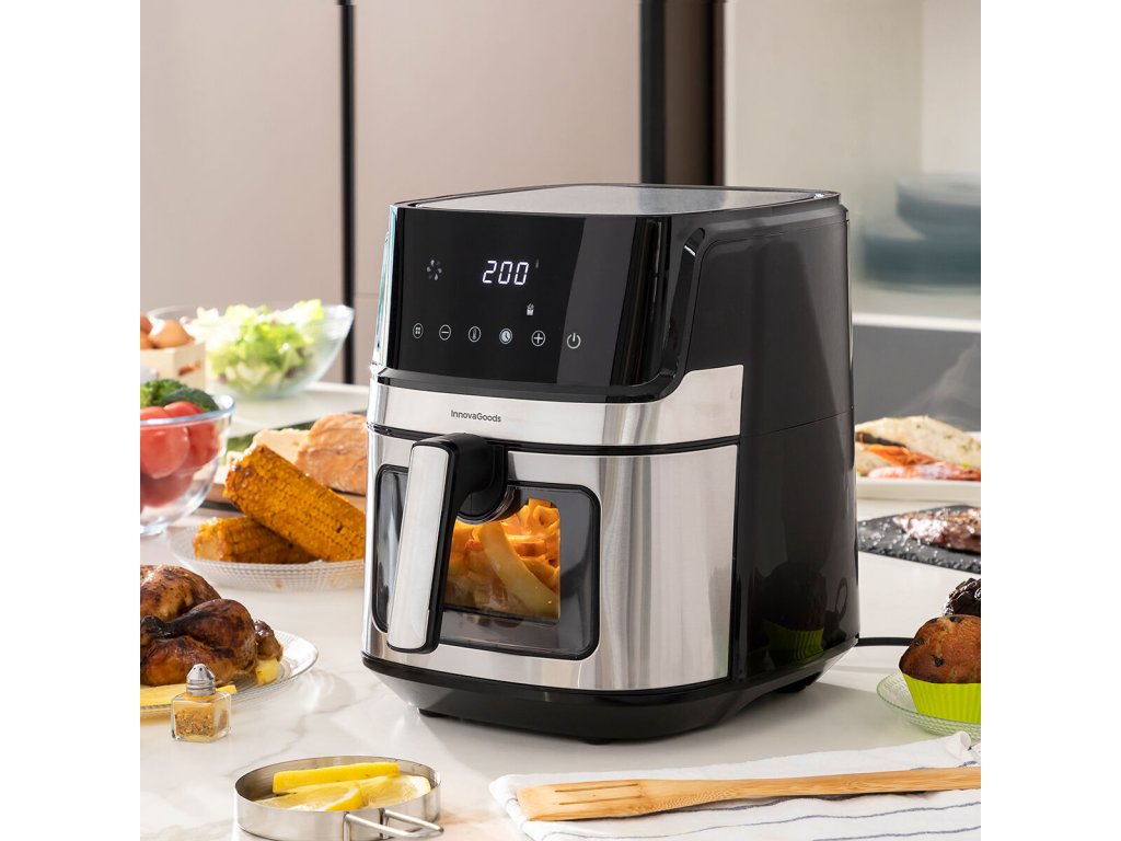 InnovaGoods itt van, hogy megkönnyítse a főzés egyszerűségét és szórakozását, mivel a legjobb új elemeket kínálja a konyhának, például a Olajmentes Sütő InnovaGoods Fryinn View 6500 Fekete Rozsdamentes acél 1700 W 6,5 L ! Fedezd fel a kiváló minőségű termékek széles skáláját, amelyek kiemelkednek a funkcionalitás, a hatékonyság és az innovatív design tekintetében!