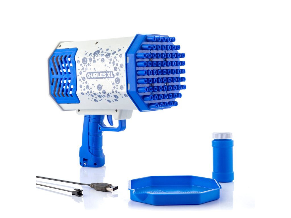 • Ötletes kialakítás, újratölthető: LED buborékfújónk könnyű és nagyon könnyen használható. Ergonomikus fogantyúval rendelkezik a kényelmes fogás érdekében. Tartalmaz 3 GUBLES XL matricát a design személyre szabásához. Újratölthető, és USB töltőkábellel is rendelkezik. Kivehető akkumulátor (a fogantyú belsejében).