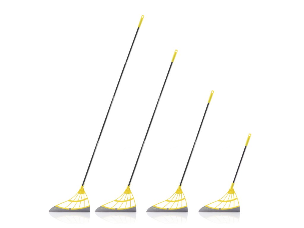 Eredeti kialakítású, többfunkciós gumiseprű, amely lehetővé teszi számos tisztítási feladat elvégzését, beleértve az ablakok seprését, szárítását és tisztítását, így könnyedén érhet el tökéletes eredményt. Ideális a gyorsabb és hatékonyabb száraz és nedves tisztításhoz, időt és erőfeszítést takarít meg. Eltávolítja a port, a hajat, a vizet vagy a folyékony maradványokat és mindenféle szennyeződést. Rugalmas gumiból készült lapos kefével és több csavarozható részből álló rúddal rendelkezik, amelyek hossza állítható és szétszerelhető. Az ergonomikus, csúszásmentes fogantyú kényelmes és szilárd fogást biztosít. Igény szerint van egy lyuk is a felakasztáshoz. Ez a sokoldalú, többcélú seprű kompakt, könnyű és nagyon könnyen használható különböző pozíciókban, attól függően, hogy milyen felületen kívánja használni (padló, ablak stb.). Könnyen tisztítható és szétszedhető a helytakarékosság, valamint a könnyű szállítás és tárolás érdekében.