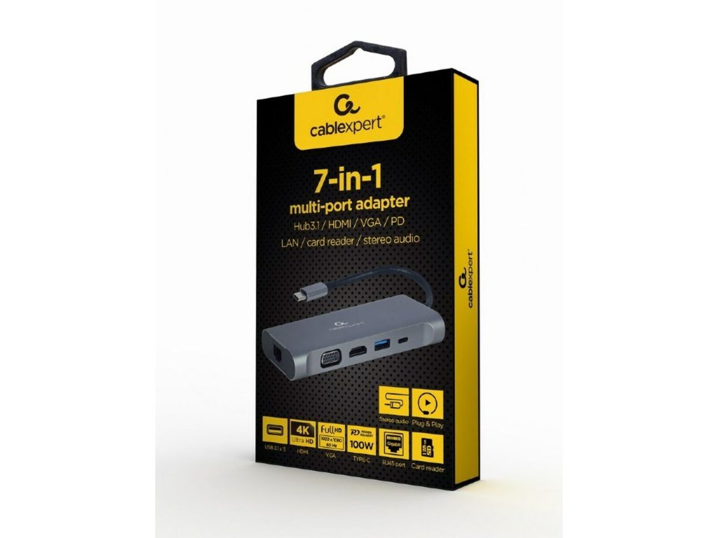 USB-C elosztó GEMBIRD A-CM-COMBO7-01 Szürke 100 W